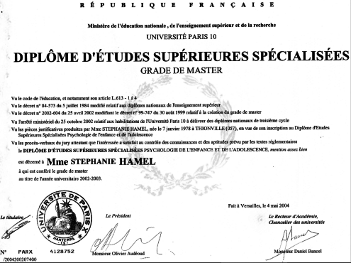 2003: DESS Psychologie de l'Enfance et de l'Adolescence